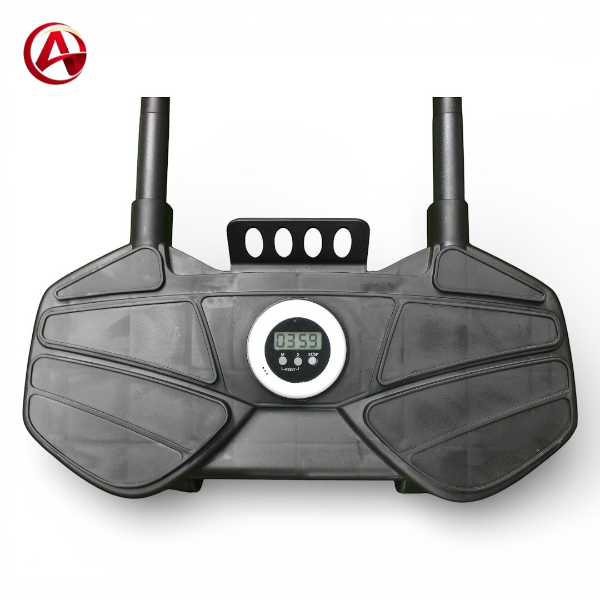 The frame is constructed from ABS plastic, paired with durable non-slip rubber wheels featuring tread for better floor grip. A stainless steel forearm pipe and PVC handle add structural support. The built-in smart counter and phone holder add convenience during training sessions.