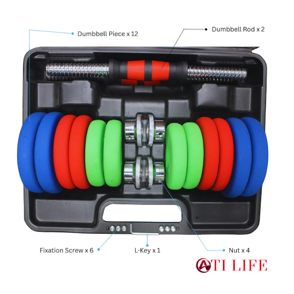 Adjustable Dumbbell Set 20 KG (Fitbell Set), HDJT Fitness Fitbell 20 KG Dumbbell Set, Adjustable PVC Dumbbell Set with Storage Box