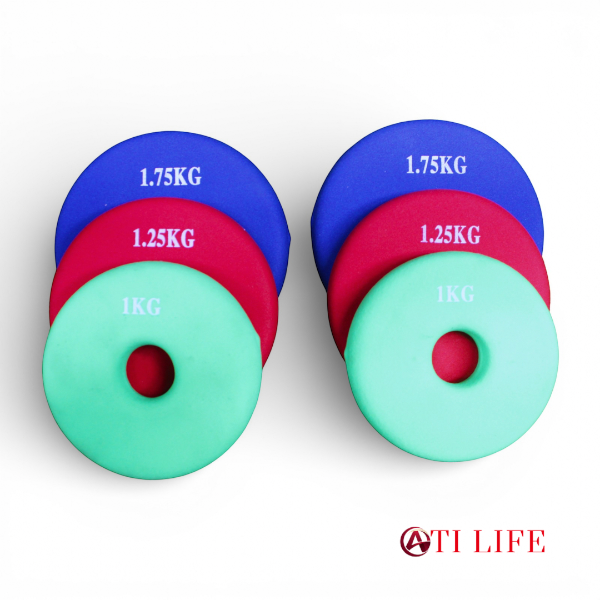 Plate Colors & Weights Green 1 kg, Red 1.25 kg, Blue 1.75 kg