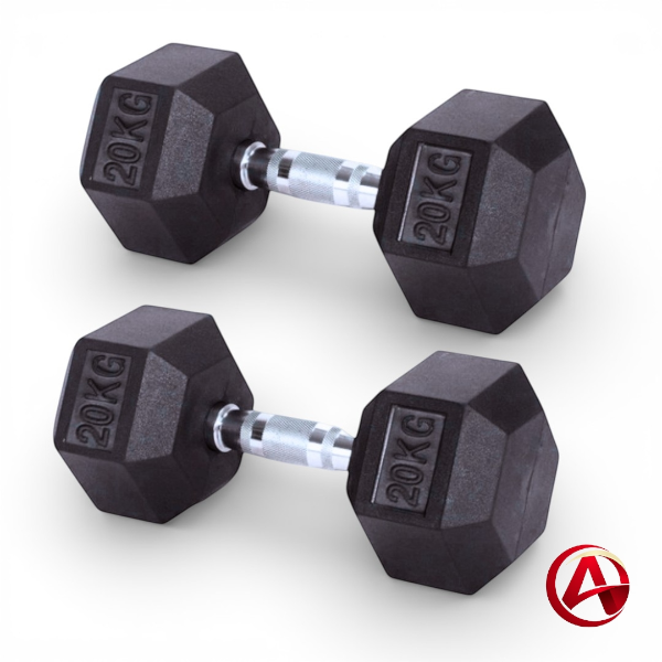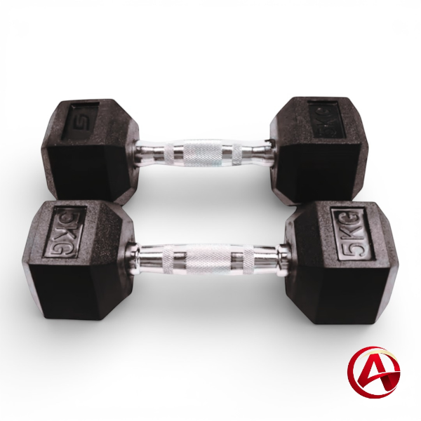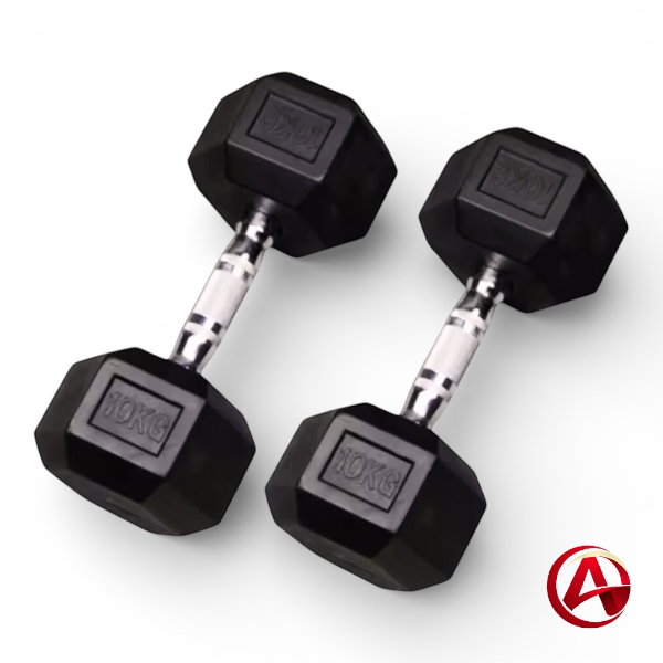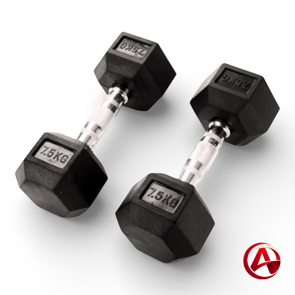 This hex dumbbell features a solid cast iron core encased in a rubber or urethane coating. The coating helps protect floors, reduce noise, and support long-term durability during regular training use.