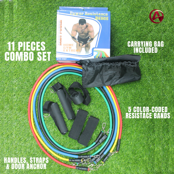 - 11-piece resistance band combo set