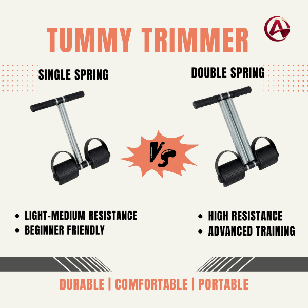 The Single-Spring Tummy Trimmer features a steel resistance spring designed for controlled, light to moderate workouts. Its compact structure makes it easy to use for regular fitness routines without requiring complex setup.